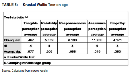 H1: There is a statistically significant difference in the medical insurance customers' perceptions of the service quality dimensions between customers of different age groups.