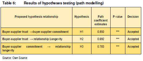 In this section, the results of the three hypotheses of the present study are discussed so as to address the empirical objectives of this study. The final three hypotheses stated that trust and commitment are positively related to relationship longevity.