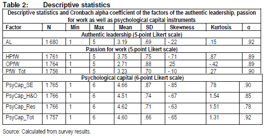 The suitability (construct validity) of the AL and PfW instruments can therefore be confirmed within the SA context. Next we look at the relationships between the variables. The descriptive statistics as well as the psychometric properties of the instruments are reported in Table 2.