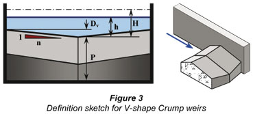 The discharge formulae to rate V-Crump weirs (Ackers et al., 1978) are:
