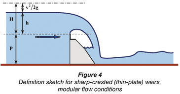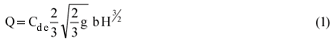 The International Organisation for Standardisation document (ISO 1438/1, 1980) gives the following discharge formulae to rate a thin-plate weir for modular flow conditions: