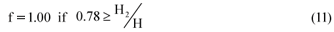 For submergence ratios exceeding 0.78, the flow-reduction factor (f) is determined as follows:
