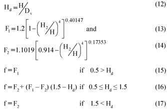 with H2 the total downstream energy head and H the total upstream energy head. The flow-reduction factor is determined by means of the following equations: