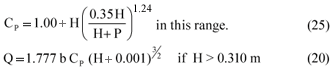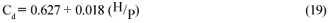 The coefficient Cp is included in order to cover a wider range of H/P values as set for the formulae in the publication of the International Organisation for Standardisation document (ISO 1438/1, 1980). Values for the coefficient CP are as follows: