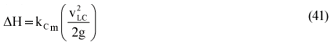 vLC = average calculated flow velocity in front of lowest weir crest (m/s)