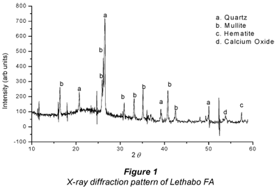 Fly ash is the fine powdery residue obtained by separating the solids from the flue gases during the combustion of coal. The fly ash utilised in this investigation was an unclassified grade obtained from Lethabo Power Station in South Africa and collected using an electrostatic precipitator. The physico-chemical characteristics of the material were determined using standard procedures, and are summarised in Table 1.