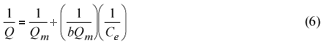 The adsorption equilibrium was described using both Freundlich and Langmuir isotherms model. The rearranged Langmuir isotherm can be described as: