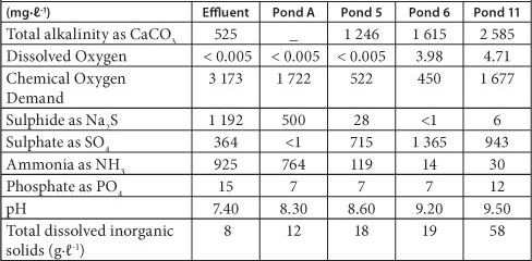 Analysis of effluent feed and ponded effluent at various points across the zero-discharge aste stabilisation ponding system