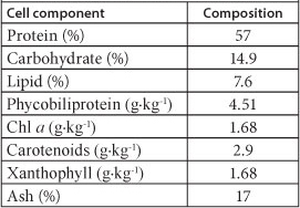 Arthrospira biomass was harvested from the tannery WSP, sundried and the analysis of cell constituents is reported in Tables 3 and 4. While sun drying is associated with some protein and pigment loss in the dried biomass, the results are roughly comparable with heat-dried material (Vonshak, 1997), and indicate the broad nutritional potential of tannery effluent-grown Arthrospira biomass as a ration in animal feeds. Alternatively, its potential value for biofuels production can also be estimated from these results (Christensen and Sims, 2011).