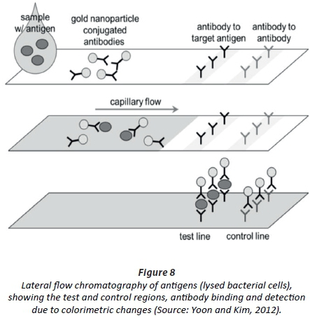 The region of the bacterium, antigen or specific protein that needs to be detected and the processing of the sample must both be considered before choosing an appropriate antibody (Abcam, 2016). It is recommended by the WHO (2001) that monoclonal antibodies be used in biosensing devices, but polyclonal antibodies may provide better results depending on the specifications for the device. Antibody immobilised sensors have the ability to be stored and transported at room temperature, but are very sensitive to temperature and humidity (Mairal et al., 2008) during immobilisation. The re-usability of antibody-based biosensors can be increased by washing with certain chemicals after detection, but this may complicate the system required. All these factors need to be considered during biosensor device design.