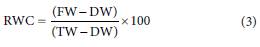 Relative water content (RWC) is a useful measure of plant water status in terms of the physiological consequences of cellular water deficit and may indicate the degree of water stress expressed under drought and heat stress (Surendar et al., 2013; Soltys-Kalina et al., 2016). It combines leaf water potential and the effect of osmotic regulation to quantify plant water status (Lugojan and Ciulcas, 2011; Kardile et al., 2018). Insufficient water in plants due to stress results in low RWC (Chakhchar et al., 2015).