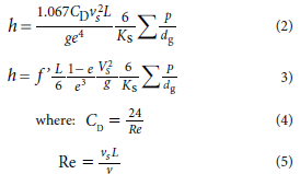 Head loss in the slow sand filtration unit was determined using the Rose (Eq. 2 )and Carman-Kozeny (Eq. 3) equations.