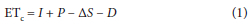 where: ETC is crop évapotranspiration from the effective root zone depth (mm), I is irrigation (mm), P is precipitation (mm), ΔS is changes in soil water storage over time, Aí (days) for the period for which ETC and Kc are computed (mm), and D is deep percolation losses below the root zone. Using Epan data the crop évapotranspiration is derived using the following equation: