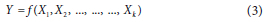 where: Y is dependent variables, outcome variables, or estimated responses in Eq. 4; independent variables are X1 with the overall mean response b0; b1 is coefficients from a regression model; k is the number of independent variables; and ε is the error.