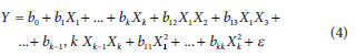 For CCD and Box-Behnken design, second-order models are widely used: Equation 4 represents the quadratic model, which is close to optimization.