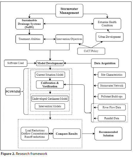 Additionally, the South African Water Quality Guidelines for Aquatic Ecosystems (DWAF, 1996) state that SRP and TIN are responsible for the eutrophic states in estuaries, a significant problem for Zandvlei (Thornton et al., 1995). Therefore, the Diep catchment - the most urbanised contributor to the flow into Zandvlei - was modelled to see the likely impact of various SuDS scenarios using SRP, TIN, TP and TSS as the stormwater constituent indicators.