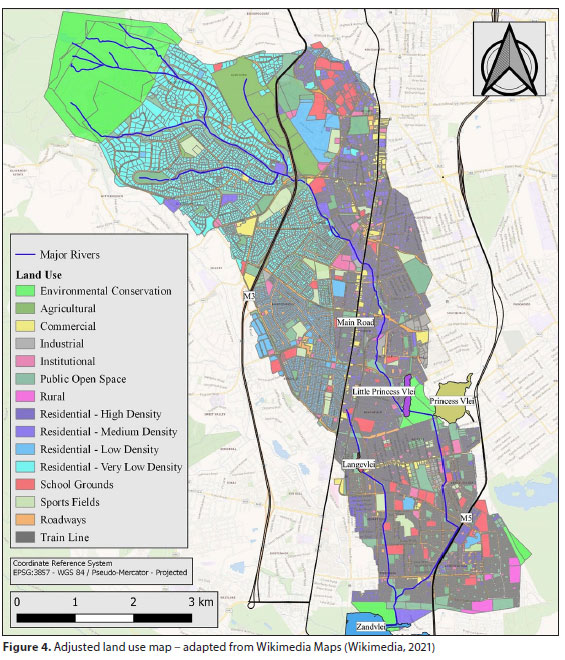 Three existing large stormwater ponds were included in the model: Little Princess Vlei, Langevlei, and the Maynardville Park Pond.