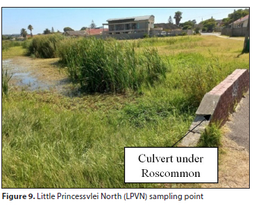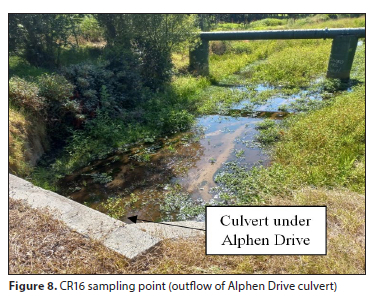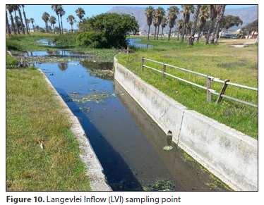 After analysing the data, it became apparent, however, that many of the sampling points were inappropriate for this project due to missing stormwater water quality measurements and a low number of data entries, leaving only 6 suitable sampling points (Fig. 7): CR16 (Fig. 8), Little Princessvlei North (LPVN) (Fig. 9), Little Princessvlei South (LPVS), Langevlei Inflow (LVI) (Fig. 10), Langevlei Outflow (LVO) (Fig. 11) and CR21 (Fig. 12).