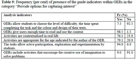 Finally, only 40% of OERs use real situations or simulations to demonstrate the necessary skills to cope with everyday problems.
