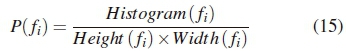 . The aforementioned probabilities are calculated from the applicable frames' histograms as expressed in equation 15: