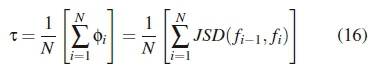 where N Є Z represents the total number of frames within the video and the inter-frame variance φ is the JSD( fi-1, fi) calculated by equation 14. It is important to note that if the inter-frame variance φ; = JSD(fi-1,f) where i = 1 will result in a very large value as the zero-frame f0 does not exist and is generally represented by a black frame. This is however not the case when encountering a fade-from-black transition at the start of the video due to the gradual change - low inter-frame variance.