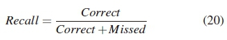 Recall: Recall rates provides a ratio of the number of relevant shot boundaries (correct detection) to the total number of relevant shot boundaries in the video, as expressed in equation 20.