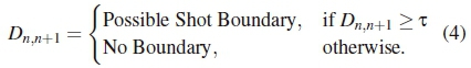 If the total difference between the two frames are above a certain threshold τ, it might be possible that a shot boundary has been detected: