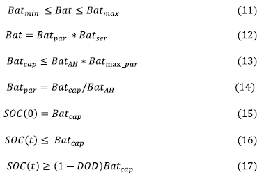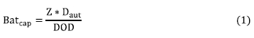 The battery capacity is determined using (1). The acronyms used in the equations are defined in the Appendix.