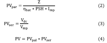 The above procedure is explained in [3] which presents simple equations that can be used to size solar PV systems. The equations can be scripted in available tools such as Microsoft Excel to further ease computation and replication of the procedure to various locations [13] [6].