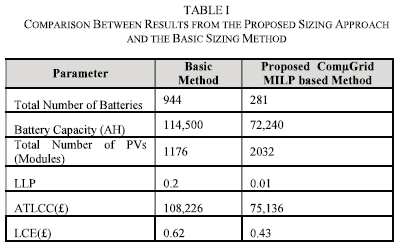 The comparison between the basic sizing approach and the ComuGrid approach is shown in Table I.