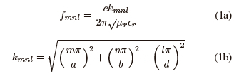 fmnl = resonant frequency for mode TEmnl [Hz]