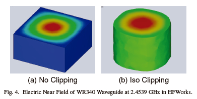 1) Waveguide Resonator: It was analytically determined that the WR340 waveguide resonates at 2.4547 GHz, using (1). This corresponds to characteristic mode TE101. The resonance study in HFWorks, shown in Fig. 4, demonstrated that the waveguide resonates at 2.4539 GHz, which is within 1 MHz of the analytical value.