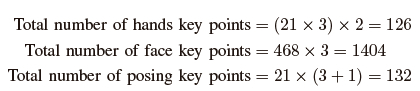 The head position and movement will still be captured as there are ten points from the pose features that map the head. The total extracted features per frame in this implementation were 258, thus 132 pose key points, and 126 hands key points.