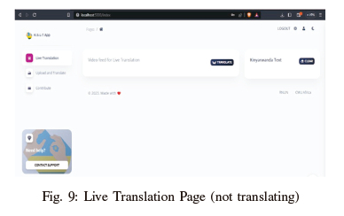 1) Translation of Kinyarwanda Sign Language from a live video feed.