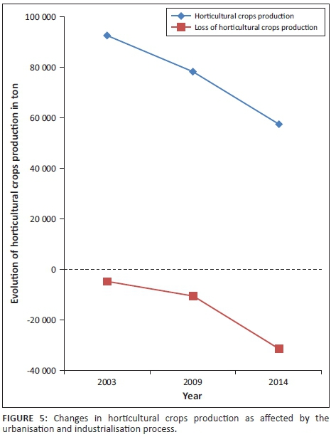 Application of optical remote sensing through the processing of satellite images of medium and high spatial resolution (Landsat and SPOT) has made it possible to monitor the changes in agricultural land from 1999 to 2014. This quantification highlights the dynamics of the land use in the Niayes area illustrated by a reduction of the surface area, which constitutes a real risk of food insecurity at the national scale. Thus, the loss of agricultural lands of about 100 ha per year in our study area is likely to cause a diminution in the volume of production of fruits and vegetables. The availability of arable lands from the rest of the Niayes region is also under threat with population growth and the resulting urbanisation process. The risk of food disaster is a serious concern in that the Niayes lands have good soil quality for agricultural purpose compared to soil types from other eco-geographical zones of the country (Peanut Basin and Lower Delta of Senegal River). In addition to the quality of soils, water resources availability with a shallow water table militates in favour of maintaining the use of the Niayes area for agricultural purposes. Like the rainfall variability, which is a limiting factor in the performance of agricultural production systems in the Peanut Basin, market gardening and horticulture in the Niayes region becomes vulnerable because of the ongoing urbanisation and industrialisation process. Incomes usually generated from the agricultural activities tend to decrease the level of resilience for rural as well as for urban populations. Furthermore, in terms of sustainability, peri-urban agriculture can help mitigate global warming by increasing sequestration of carbon in the soil while industrialisation tends to favour emissions of greenhouse gases in the atmosphere. Therefore, the principles of sustainable development impose the application of public policies pertaining to the conservation of the agricultural land of the Niayes region.