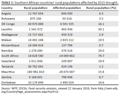 Lesotho has recently become a statistic among other southern African countries that are ravaged by severe drought to an extent that the Lesotho Government declared a state of drought emergency in the country on 22 December 2015. This drought disaster has compelled the country to appeal for assistance from the international community (WFP 2015a). This declaration came as result of the country being incapable of addressing water, food, nutritional support and medication to vulnerable people and to prevent further loss of livestock with a shortfall of $27.4 million. This money is intended to assist not only the most vulnerable groups but also people in the urban areas as well to meet high cost of food. Table 1 shows Lesotho and other southern African countries that are affected by the current El Niño situation which has caused drought events (South African Government 2012). This study was probed by a study in the Free State province of South Africa, which neighbours Mafeteng district of Lesotho in which the entire region was found to be 100% spatially covered with severe drought in 2015, more especially in the northern (Fezile Dabi district) and eastern (Thabo Mofutsanyana district) parts of the province (Hlalele 2015; Hlalele, Sakulski & Jordaan 2015). Given the high livelihood dependency on rain-fed agriculture and vulnerability to drought impacts in Lesotho and mountainous topography, the study aimed at estimating land degradation vulnerability from drought indices for effective mitigation and disaster risk reduction measures.