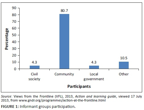 A total of 80.7% community representatives were interviewed in comparison with local government officials (4.3%) and the civil society (4.3%) (see Figure 1). In addition, participants were generally aged between 26 and 60 years, and the majority were females constituting about 59.8% representatives of community.