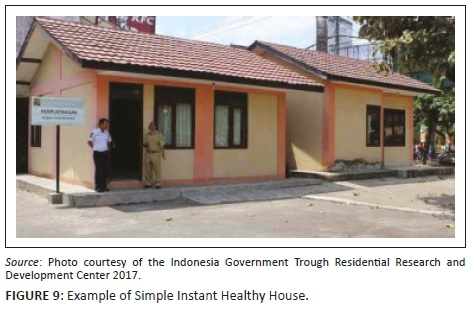 Simple Instant Healthy House is the embodiment of a modular design, a concept that divides the system into small parts (modules) of efficient sizes in order to be assembled into a large number of different products (Sabaruddin & Sukaman 2015). Simple Instant Healthy House has been launched by the Indonesian government through Residential Research and Development Centre under the Ministry of Public Works and Residence. Simple Instant Healthy House construction cost for an area of 40 m2 (type 36) is $6332.23. Residential Research and Development Centre claims that RISHA is resistance until eight richer scalars or eight in Mercalli Modify Intensity scalar. However, RISHA has still less public interest because of the lack of promotion; this is the reason why so many people do not know about RISHA. So far in Yogyakarta, the enthusiasts are still dominated by the government. In 2014, there were only 16 units, and it is increased only five units in 2015 (Indonesia Government through Residential Research and Development Center 2017)