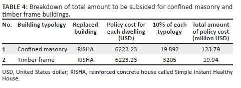 Later, the total cost of policy is compared to the economic loss reduction and number of decreased casualties after mitigation policy implementation scenarios. As shown in Table 4, we assume that 100% of reconstruction expense is subsided by government for each dwelling