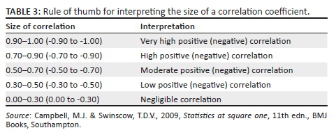 To examine the correlation between the variables, the Pearson's chi-square test and the Pearson's correlation test were performed. Both statistical formulas are able to evaluate the strength and the directions of the correlation. The statistical software used in this data analysis is the Statistical Package for the Social Sciences (SPSS). The expected results are a range of relationship levels between 0 and 1. The higher the correlation value, the stronger the relationship among the variables. Table 3 describes the classification of correlation levels and the interpretation.