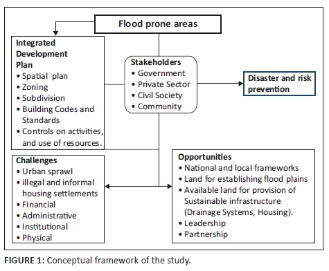 Figure 1 presents a conceptual framework related to guiding developments in flood-prone areas and how to overcome disasters related to flooding before, during and after the occurrence of floods.
