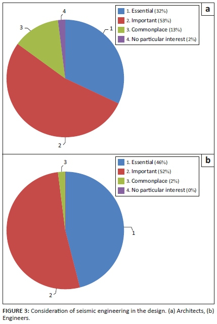 For architects: Eighty-five percent of architects describe seismic design as 'essential' or 'important', but 13% consider this integration to be 'commonplace' and only 2% consider it to be 'of no particular interest' (Figure 3a).