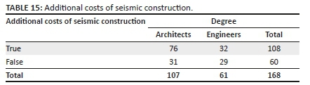Seventy-one percent of architects and 52% of engineers consider that seismic construction necessarily entails additional costs.