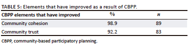 Development planning cannot afford to ignore the benefits of intra- and inter-networks (Jakobsen, Clausen & Andersen 2020) if local resources are to be fully exploited through enhanced social exchange. Social capital is categorised as bonding or bridging (Putnam 2000), with bonding inward looking and essential in strengthening ties among homogenous groups, while bridging is outward looking and focuses on diverse groupings. Participatory planning is one of the avenues through which bonding and bridging ties can be strengthened as corroborated by Straub et al. (2020) that social capital is reflected in relationships between individuals as well as goods and services transferred through these networks. Bonding capital can result in exclusively isolating members who do not espouse a fundamental identity. The study examined the existence of trust between individuals and community groups post the CBPP processes. Trust is an important component in influencing the ability to take collective action for the benefit of the community (Villalonga-Olives & Kawachi 2015).