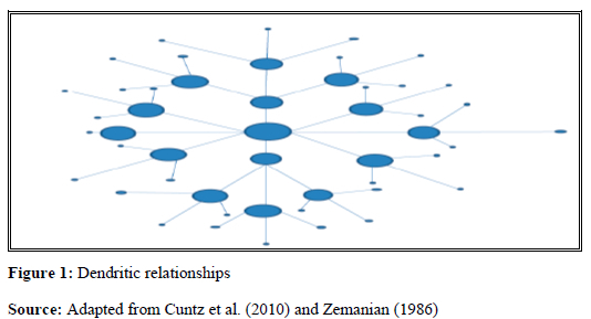 MLM uses social networks to distribute products or services by individuals recruited into the system to earn income for themselves and those who drafted them. The supplying firm gains in the form of increased sales. Usually the retailing is done from the backyard and is informal within individuals' social circles. It is a form of direct marketing, where individuals will sell and make their marketing efforts directly to potential clients (Peterson and Wotruba 1996). Those who are recruited receive more gains when they form their own distribution networks. For example, if a leader recruits five people into the programme, those five are encouraged to recruit their own five. The current study has labelled this development a dendrite-like social distribution network. The continuous multiplication of the dendrites lies at the centre of the growth of the supply chain network. This also has a positive effect on the financial rewards for all who are involved in the business. Naturally, since all members of the dendritic relationship stand to gain from the expansion of social dendrites, there is a tendency to collaborate (Pang and Monterola 2017). In such a case, collaboration can be said to be the glue that keeps the dendrites working towards a common goal.