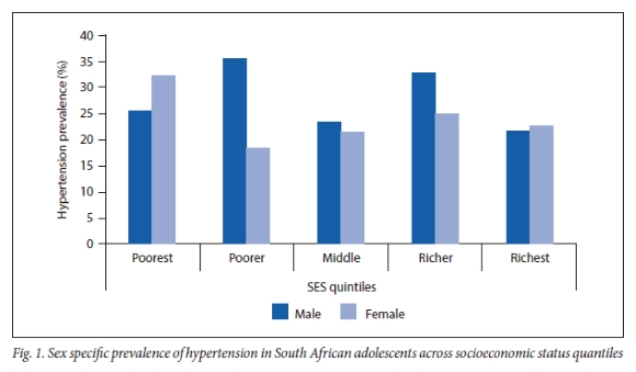 METHODS. We analysed cross-sectional data from the South Africa Demographic and Health Survey 2016 comprising 1 062 adolescents aged between 15 and 19 years. SES was based on wealth quintiles. Multivariable logistic regression models and generalised structural equation modelling (GSEM) were employed to examine the relationship between SES and hypertension in adolescents.
