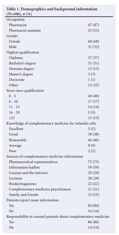 The perceptions and prescribing patterns of complementary medicines for infantile colic by pharmacists in Johannesburg, South Africa