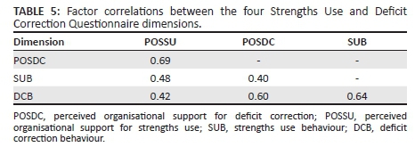 Based on this argument, Van Woerkom et al. (2016) conceptualised four dimensions related to strengths use and deficit improvement, namely perceived organisational support for strengths use (POSSU), perceived organisational support for deficit correction (POSDC), strengths use behaviour (SUB) and deficit correction behaviour (DCB). Following this conceptualisation, Van Woerkom et al. (2016) developed the Strengths Use and Deficit Correction Questionnaire (SUDCO) to measure POSSU, POSDC, SUB and DCB. The questionnaire was validated in a South African study. The results of the validation study showed that the SUDCO is reliable, and the factorial validity, convergent validity and predictive validity of the instrument were confirmed among a heterogeneous sample across sectors in South Africa.