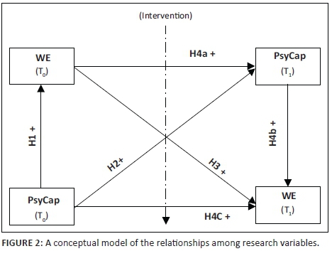 Hypothesis 1 (H1): Psychological capital (hope, optimism, self-efficacy and resiliency) is positively associated with work engagement both before (T0) and after (T1) the intervention.