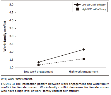 Hypothesis 2: Highly engaged female nurses with high levels of WFC self-efficacy will express low levels of WFC.